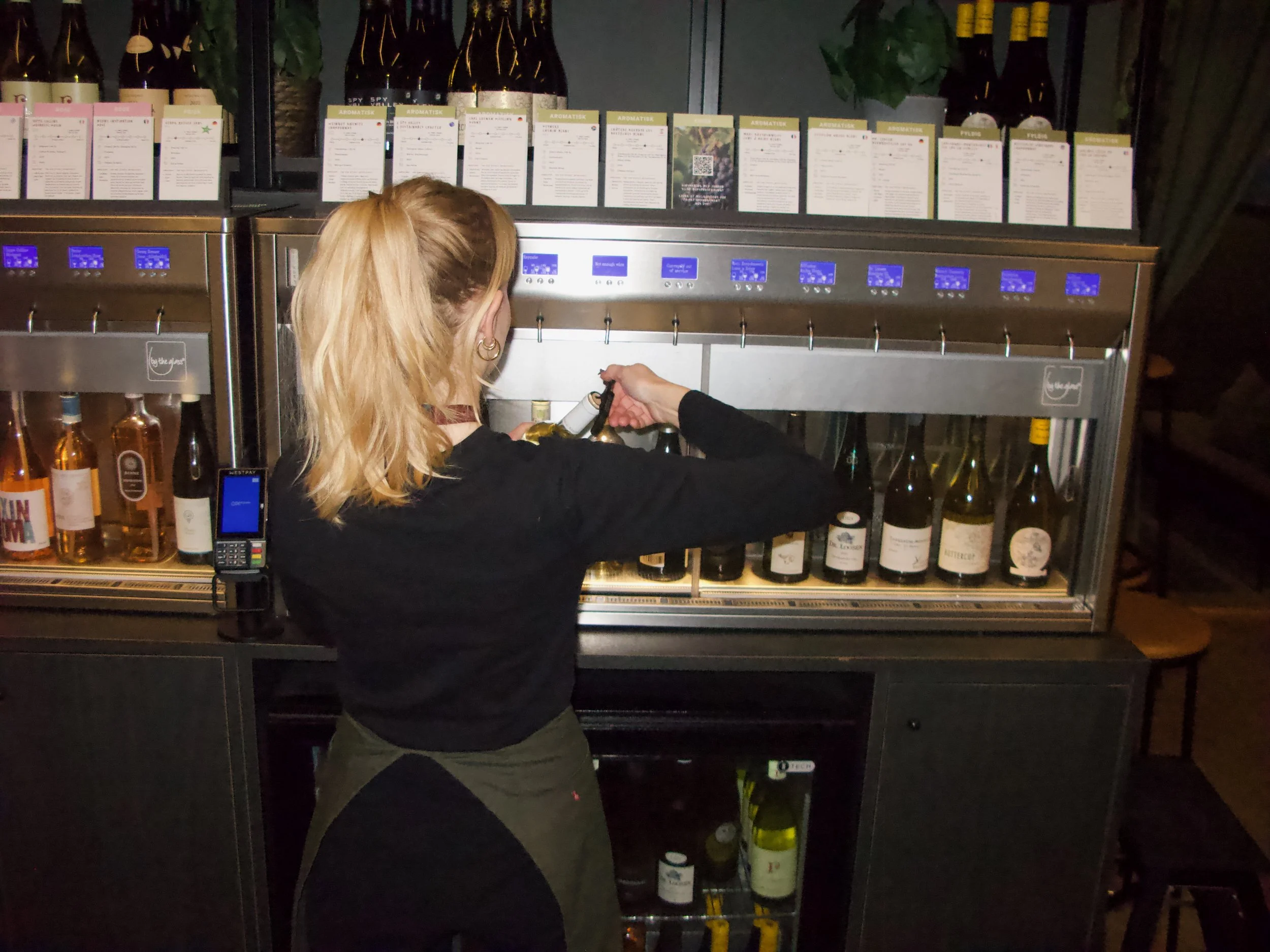 Vi serverer vin på tapp – et konsept som er både bærekraftig, ujålete og ganske unikt i Oslo.Det betyr at du kan smake deg frem til nye favoritter, uten å måtte bestille en hel flaske. Utvalget vårt endrer seg jevnlig, så det er alltid noe nytt å oppdage – enten du kommer innom for et glass etter jobb, en rolig date eller en kveld med gjengen.